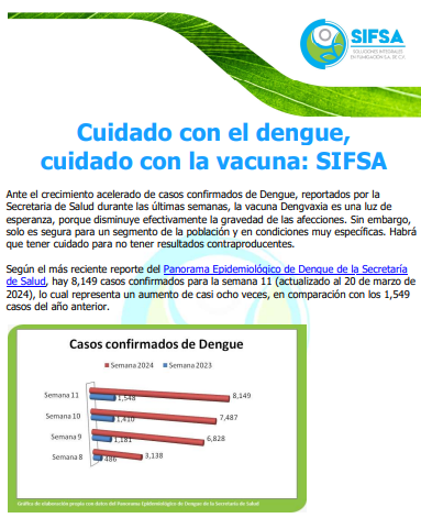 Cuidado con el dengue, cuidado con la vacuna: SIFSA